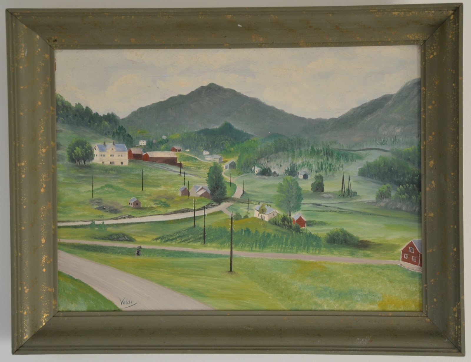 | Tveit med Brakstadfjellet i bakgrunnen, måla av Amund Valde. |